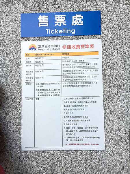 票價一覽表,全票每張80元,剛好在遊客中心有拿到折價的票券,一張50元。