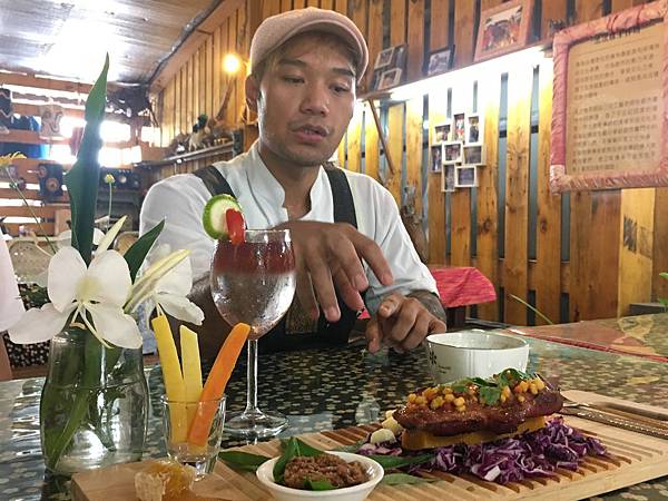 我們一到現場,闆娘熱心解說菜籃中的所有食材,連待會兒盛盤的花草植物也都放入其中了呢~