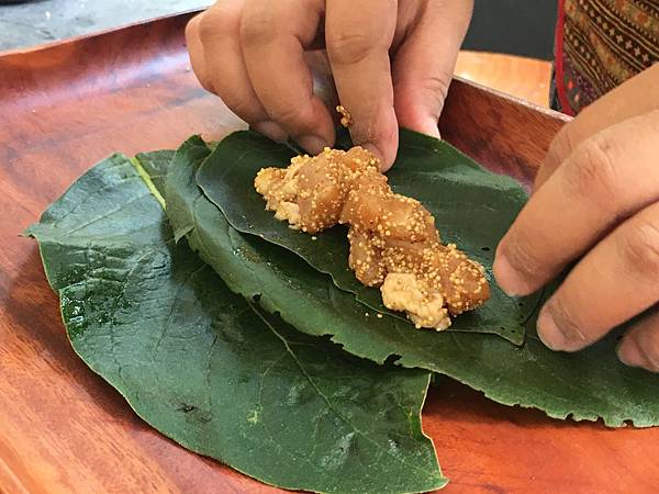 (只記得是很大片的葉子,但是不是芭蕉葉有待確認XD)