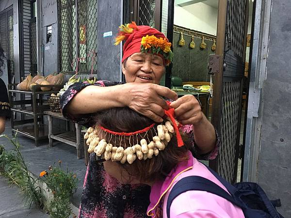闆娘媽媽表示如果這時候產紅藜,就會做紅藜花圈,這時候產花生,當然就用花生做花圈啦!