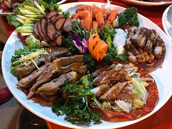 緊接這一道道料理又上桌,黃金拼盤、九母魚酥、鱘龍魚料理